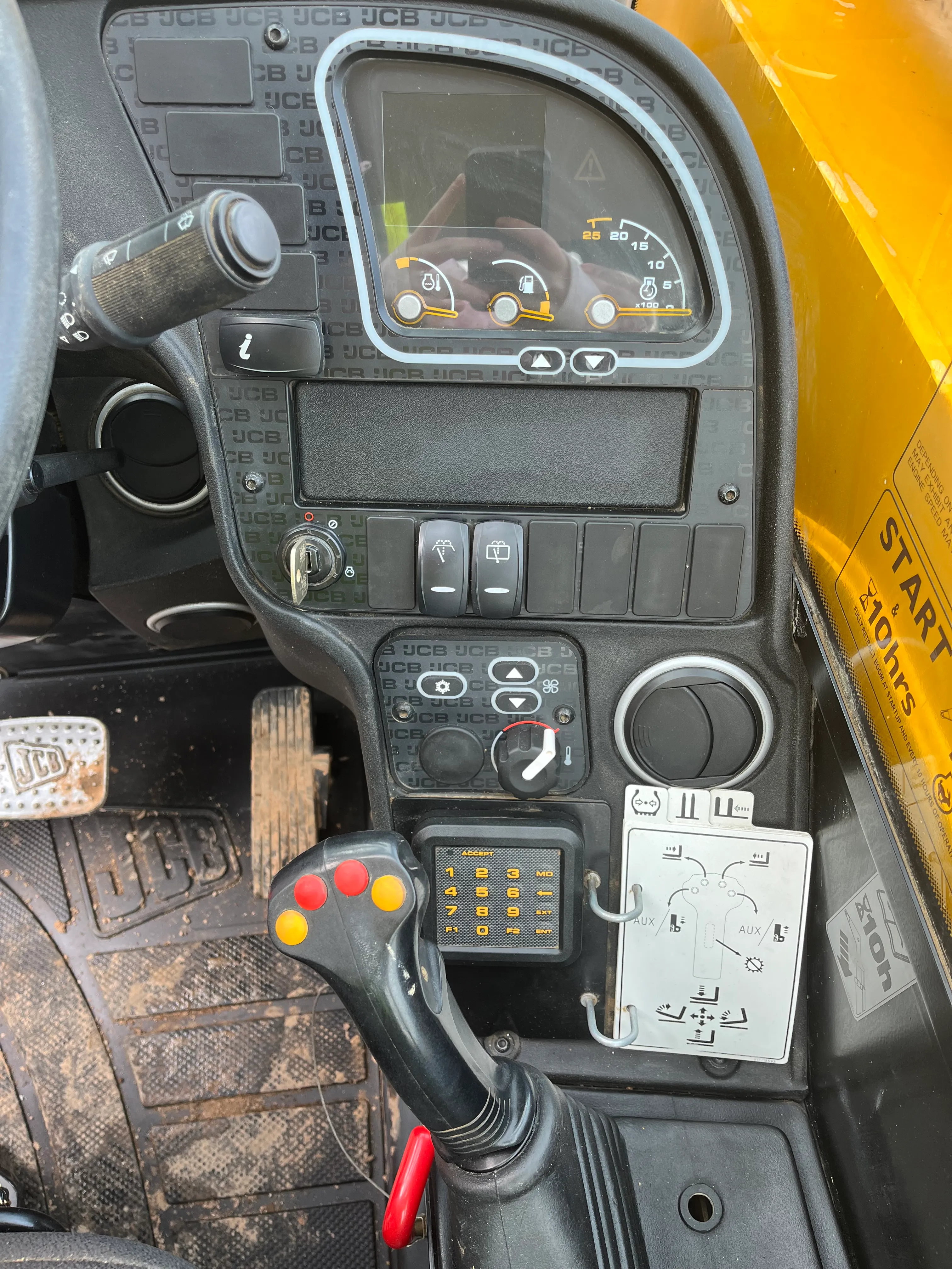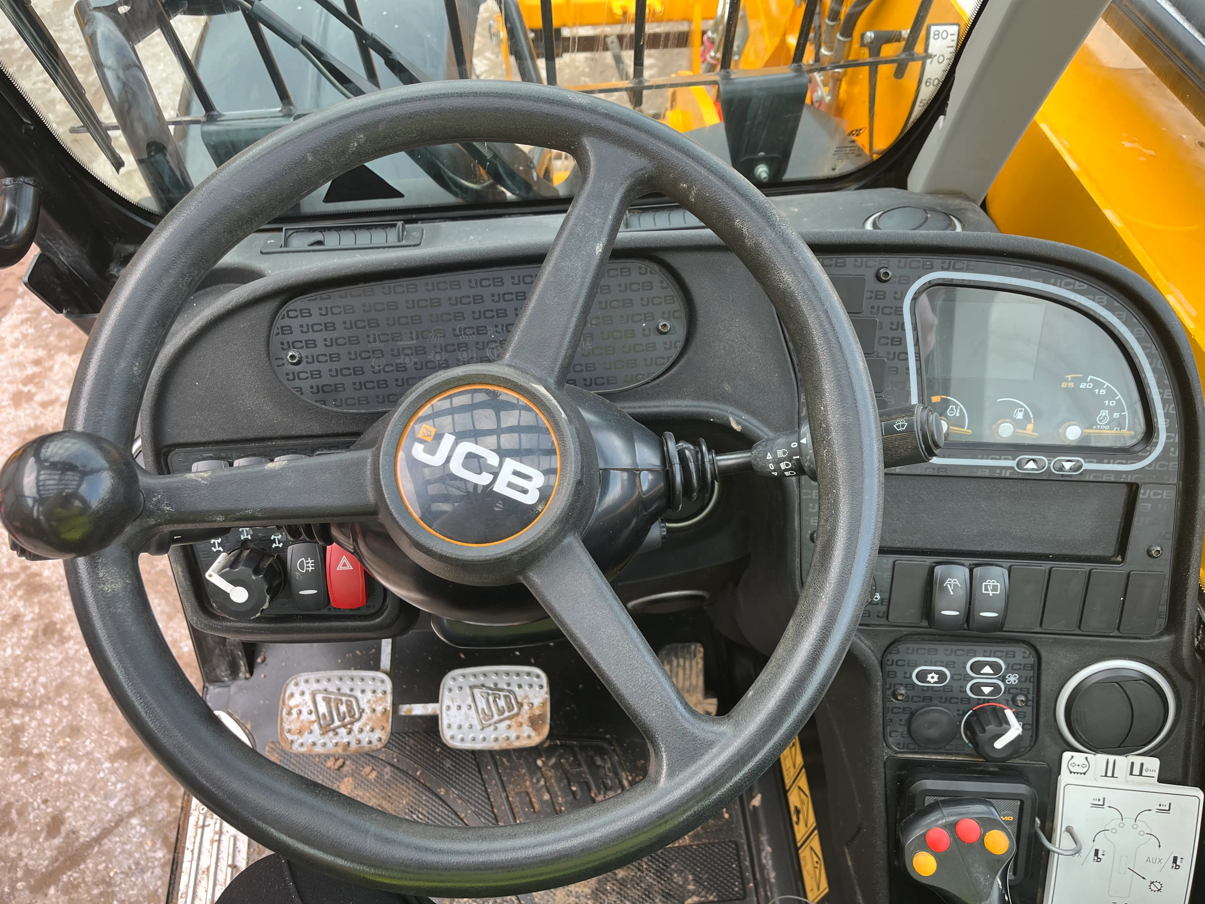 Joy stick control, Air conditioning, 9.5-meter reach, 3.5Ton Lift, 4wd Wheel drive, 3 Optional steering modes, Power shift gear box, Shuttle forward / reverse, Pallet Forks, safe working load indicator, Serviced