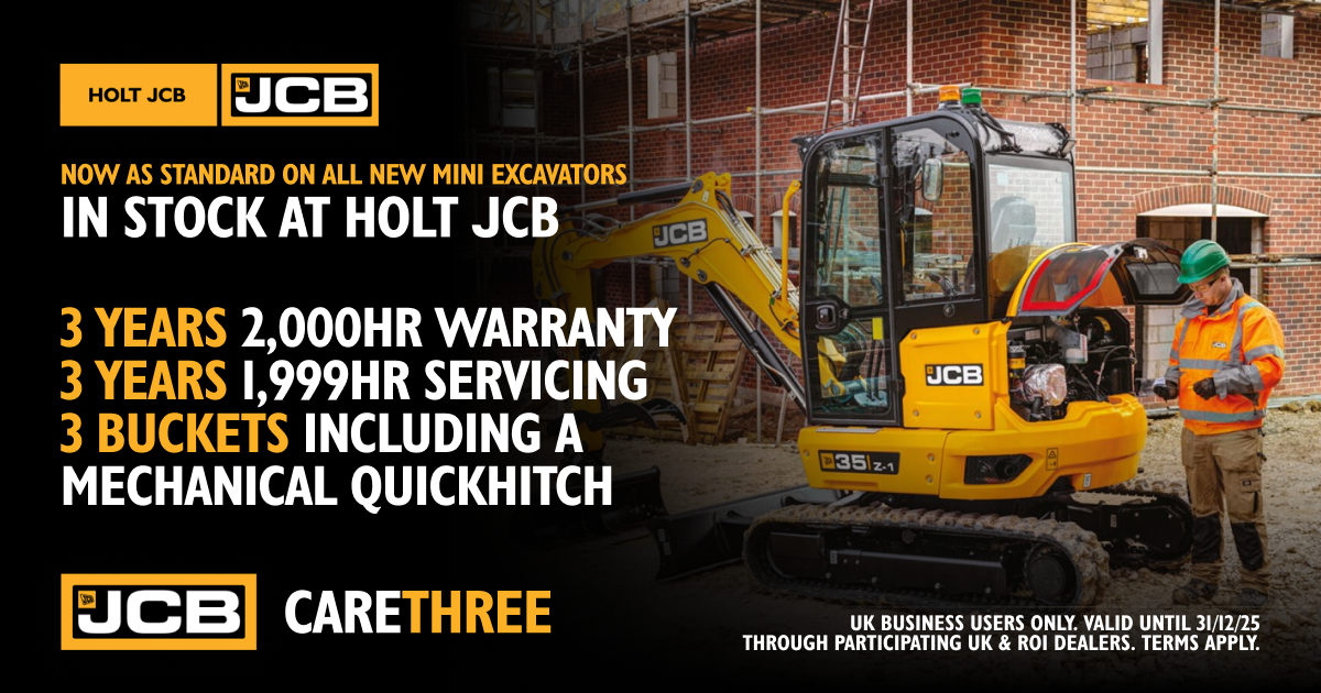 In purchasing your JCB mini excavator from Holt JCB you'll benefit from our decades of experience and expertise across aftercare, servicing and parts.